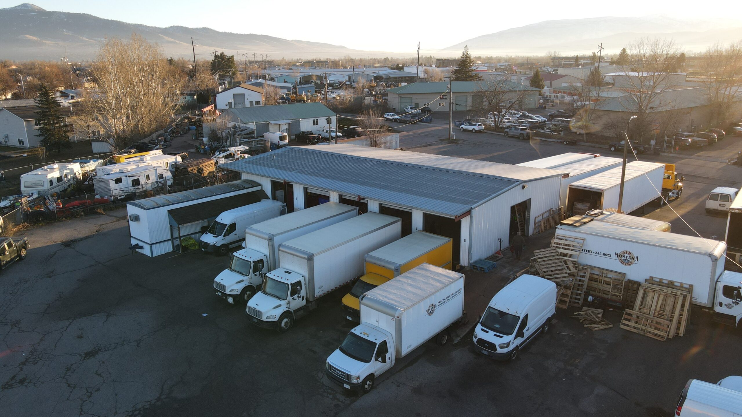 The subject property is a ±3,800 square foot cross-dock industrial facility situated on an approximately ±47,480 square foot site in Missoula, Montana. The building is configured with ten (10) dock-high loading doors and one loading ramp, providing efficient truck circulation and operational functionality. The property includes approximately ±700 square feet of office space, supplemented by an ancillary office trailer for additional administrative use. Site improvements consist of an asphalt-paved yard, partial perimeter fencing, and building-mounted exterior lighting.